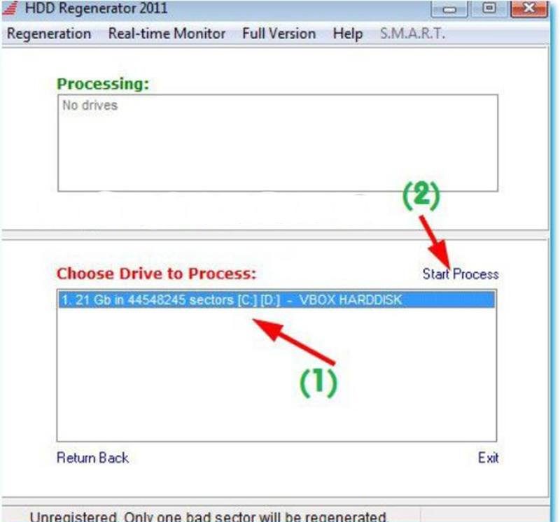 Bước 3: Chọn tiếp HDD Regenerator và nhấn Enter rồi cứ để cho chương trình tự động chạy nhé.