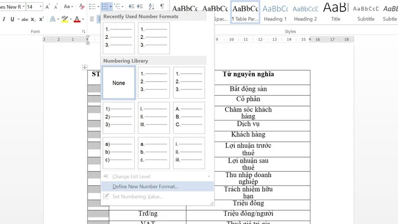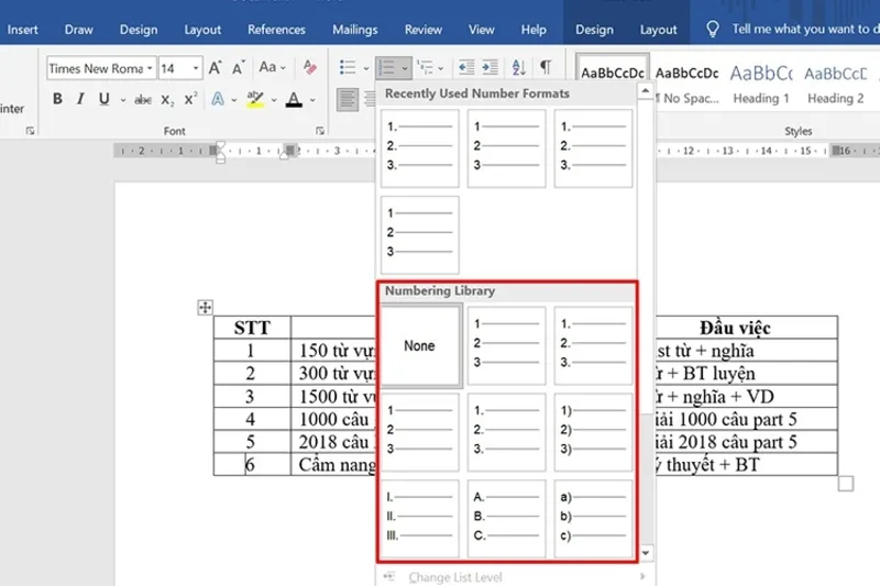 Hướng dẫn đánh số thứ tự nhanh bằng Numbering và phím Tab