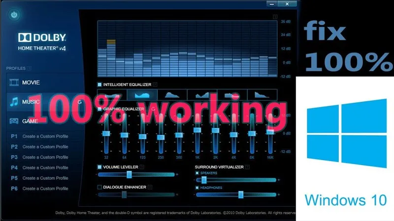 Chống méo tiếng và tinh chỉnh âm thanh: Dolby Home Theater v4 đảm bảo âm thanh không bị méo, đồng thời cung cấp công cụ tùy chỉnh như Surround Virtualizer và Graphic Equalizer.