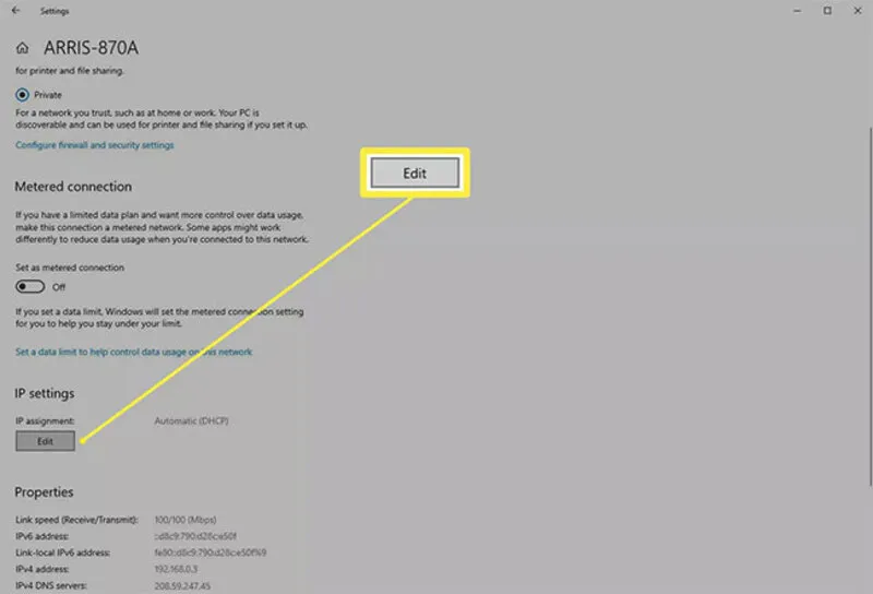 Thay doi dia chi IP win 10 10