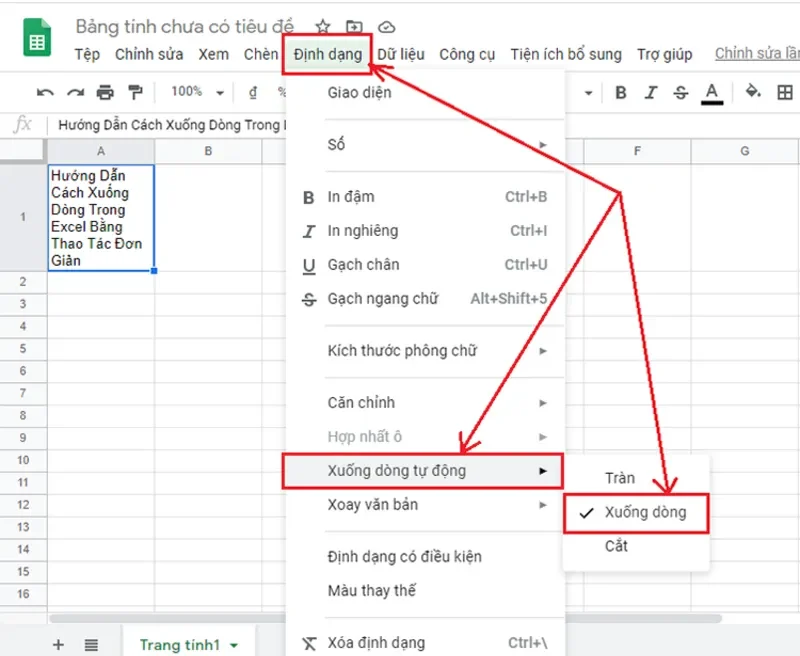 Sử dụng tính năng Wrap Text (Xuống dòng tự động)